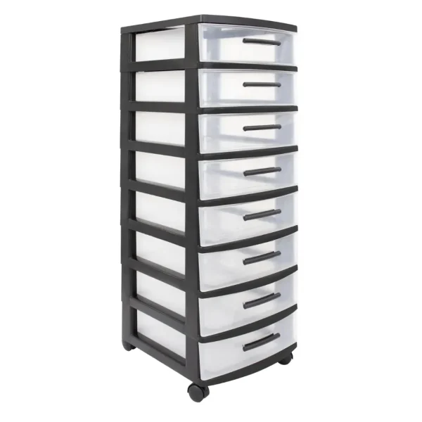 Fabricado en resina de polipropileno de alta densidad, este cajonero es duradero y fácil de limpiar. El gavetero modular modelo Eclypse de 8 Niveles es la solución perfecta para mantener tus espacios ordenados y organizados.