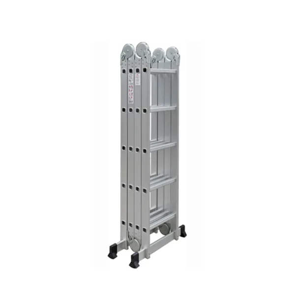 Nuestras escaleras multiprósito presentan más de 13 usos y combinaciones diferentes, incluida una escalera de sección recta, una escalera de tijera, caballete de escalera, soporte de escalera, andamio de escalón y trabajo de extensión. La plataforma antideslizante y los pies de goma aseguran una base estable y segura mientras trabajas en alturas. Ya sea para reparaciones, mantenimiento o pintura, esta escalera es tu mejor aliada.