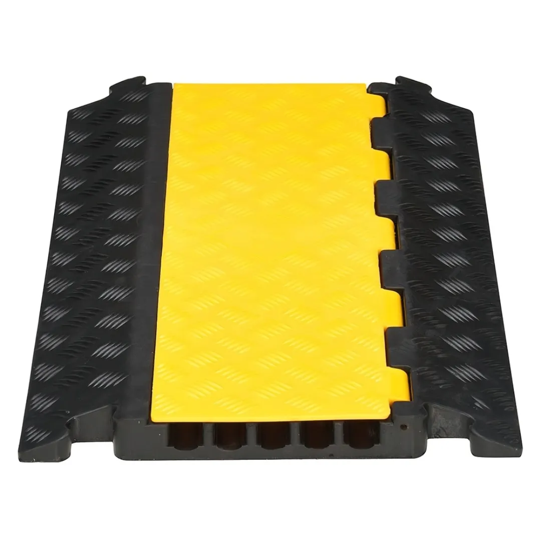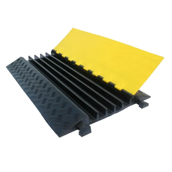 Diseñado para proporcionar un paso seguro a peatones y vehículos, este protector cuenta con canales amplios que se adaptan a diversas dimensiones de cables y mangueras.